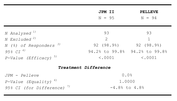 In summary, both JPM II and Pelleve demonstrated a high and practically identical response rate, with